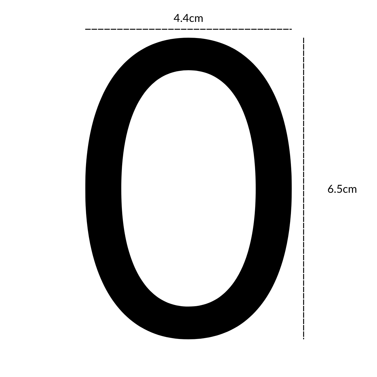 Each letter is approximately 6.5 cm x 4.5 cm. Sizes may vary slightly depending on the character shape.