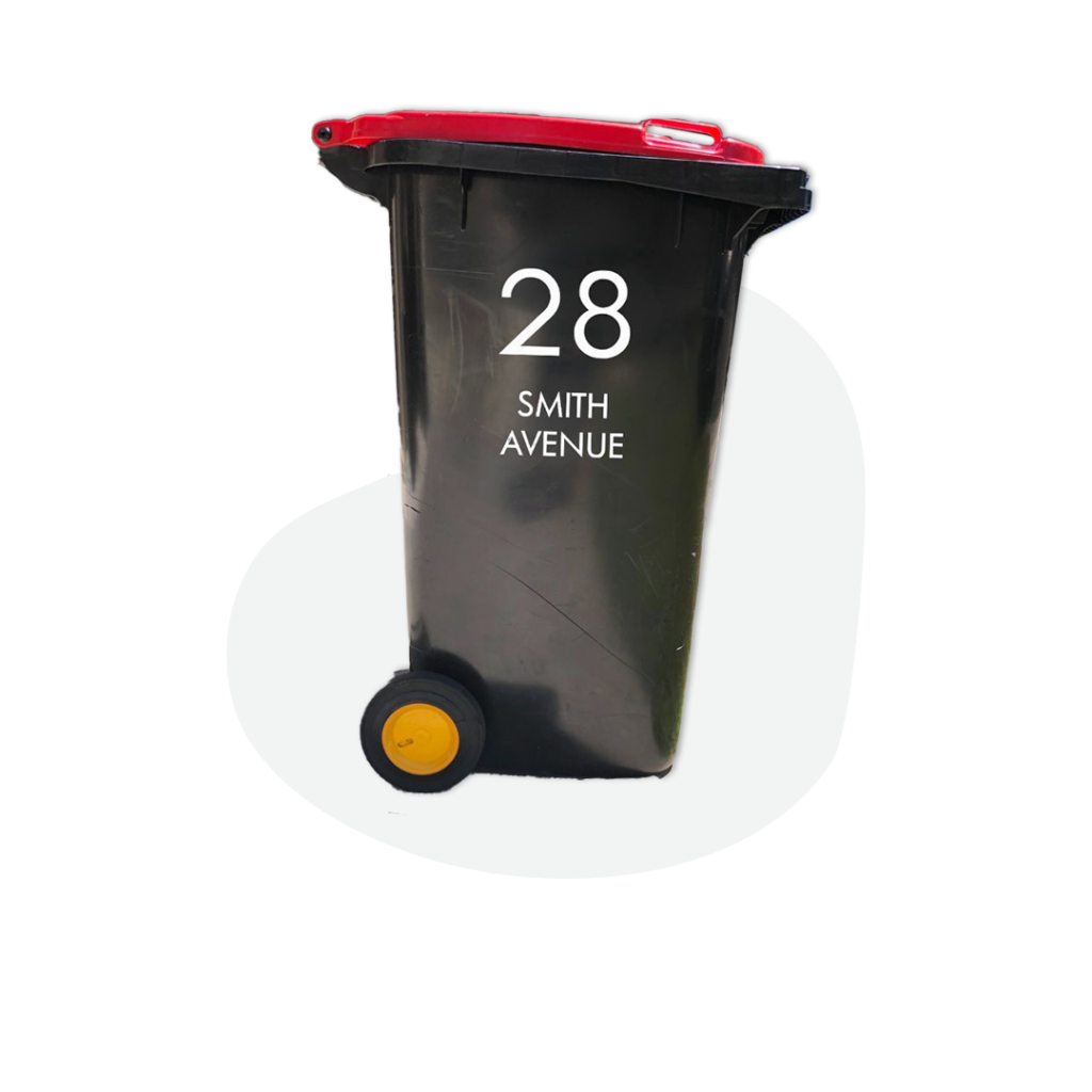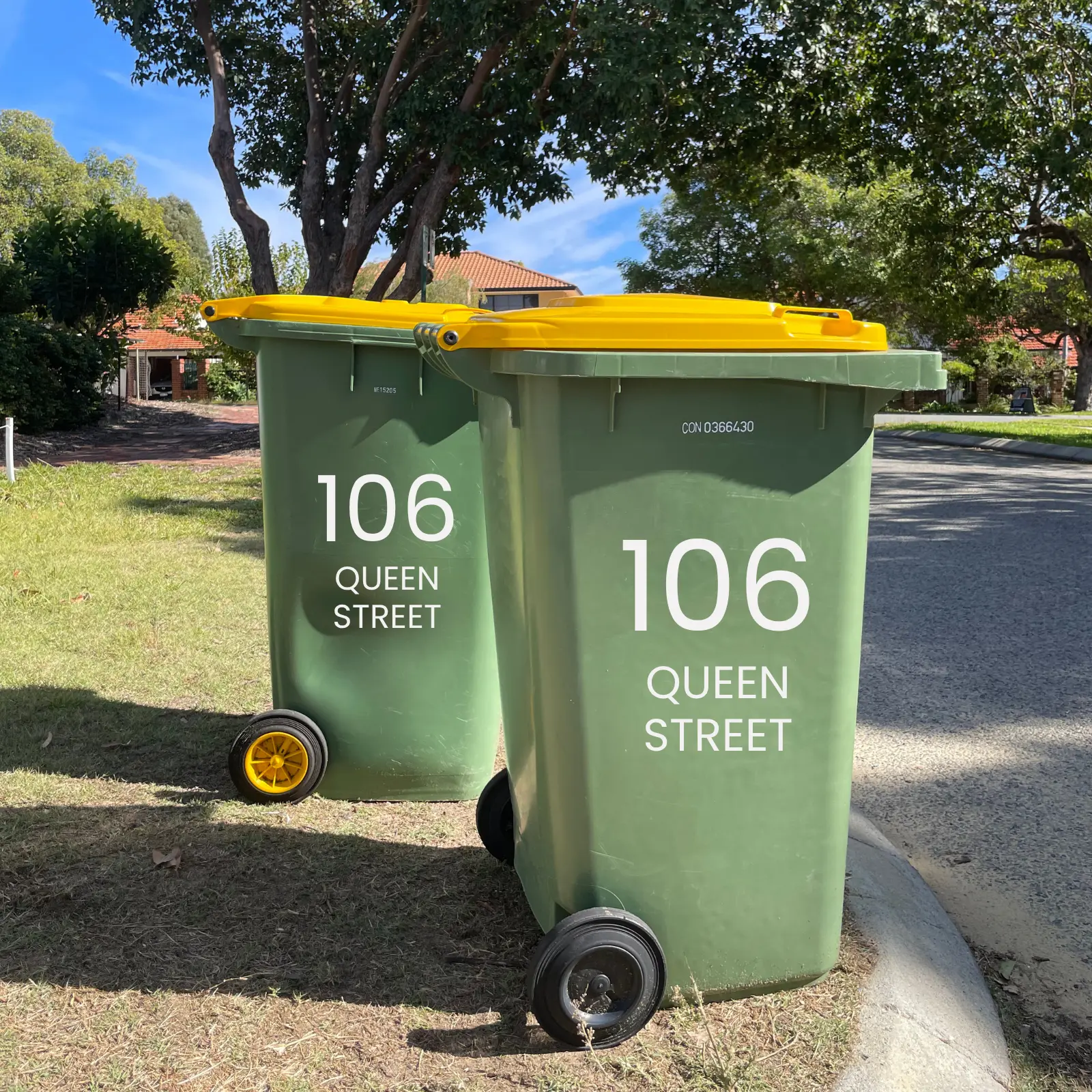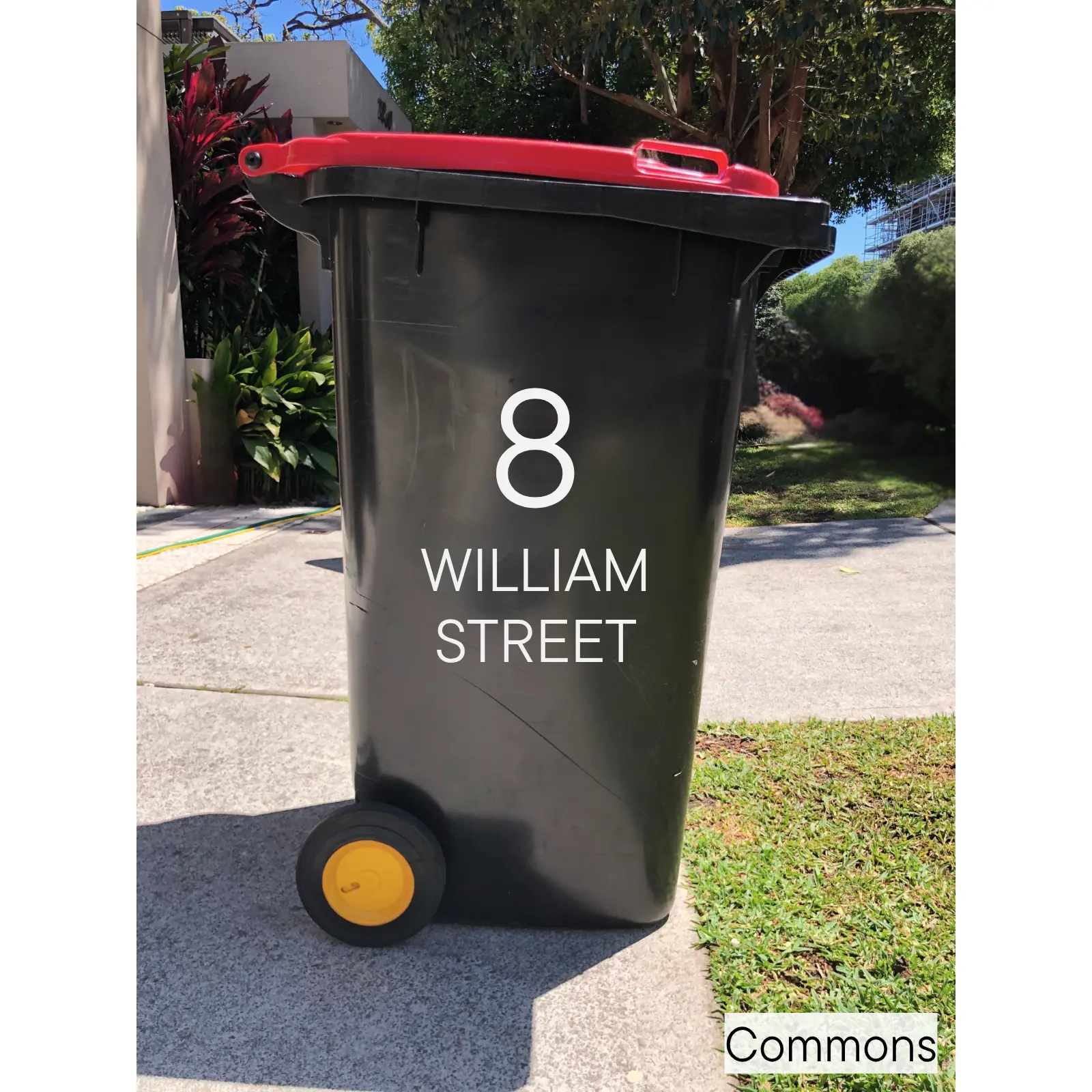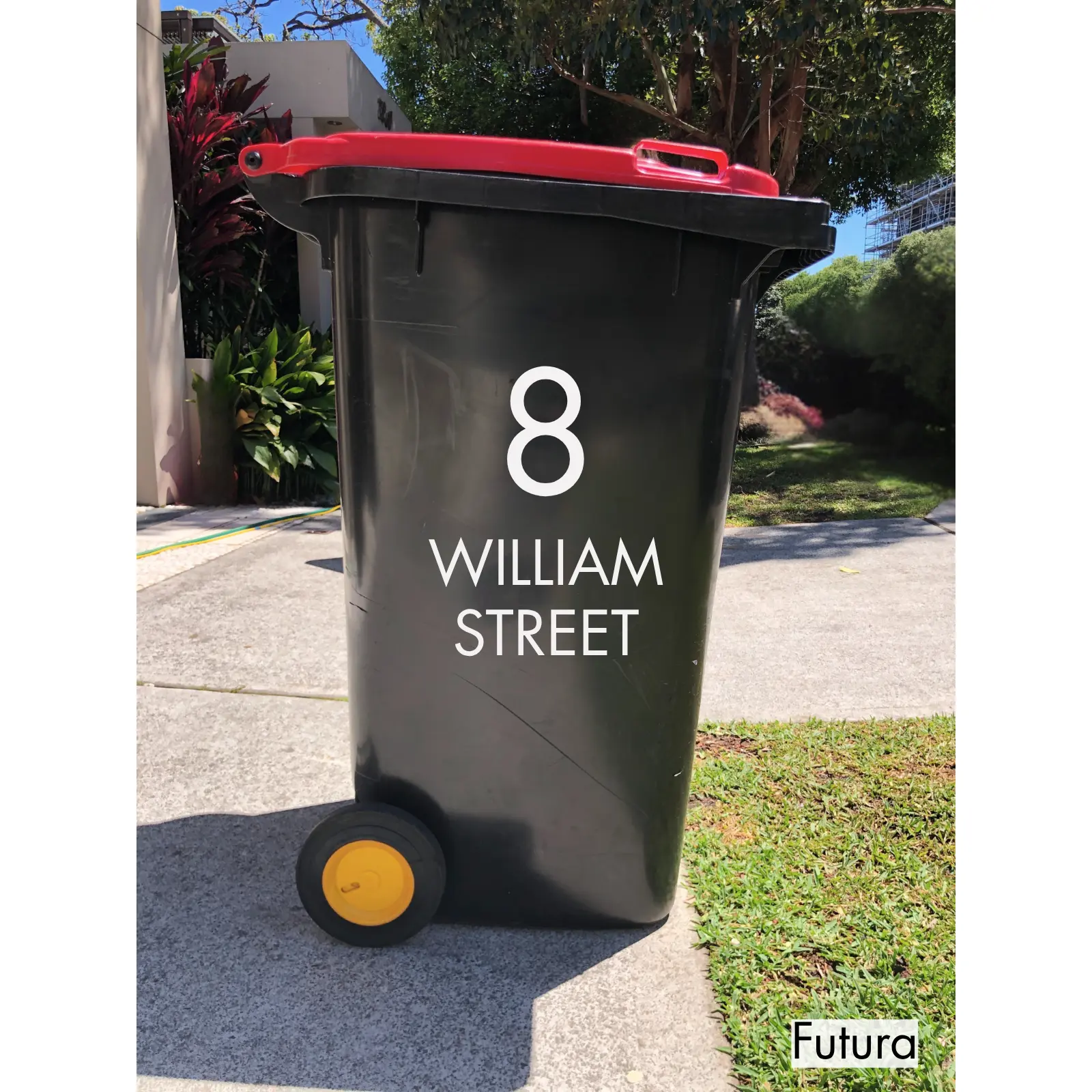 Keep your bin easily identifiable with our Wheelie Bin Vinyl Address Sign. Designed for durability and visibility, this self-adhesive vinyl sign helps prevent mix-ups and theft by clearly displaying your house number and street name on your bin.